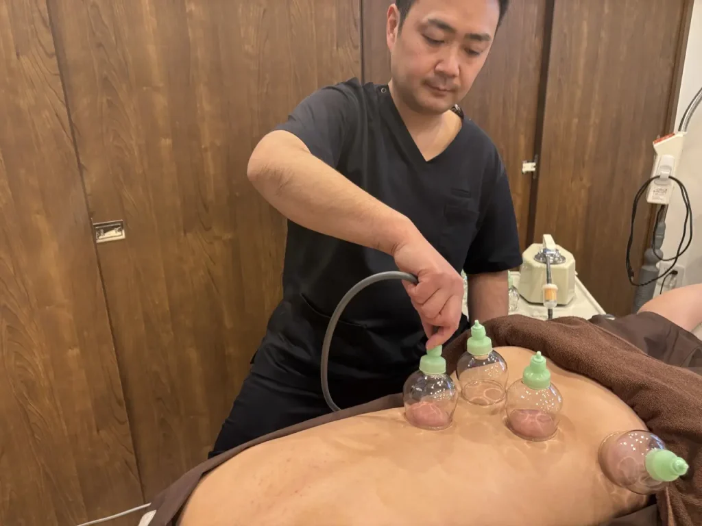 専用の電動ポンプを使う事で、しっかりした吸引を素早く行います。背中一面を同時に行えますので、肩こり・腰痛などツライ症状を多く持っている方にオススメです!